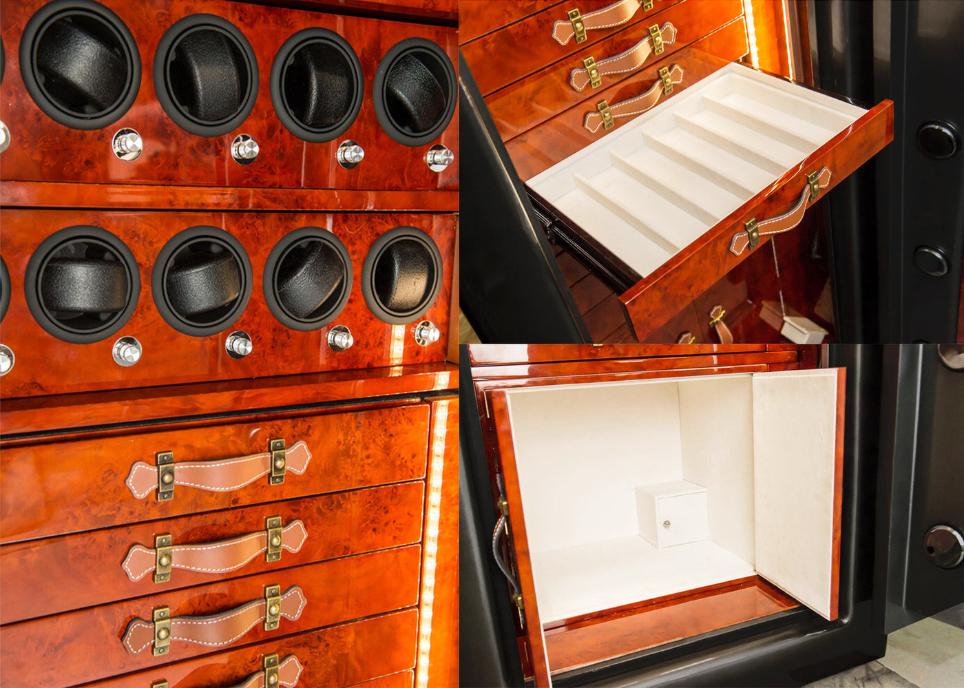 The Veron Elite™ Series stands as a paragon of luxury and security for your prized watch collection. Crafted from robust carbon alloy steel and enhanced with advanced security features including a biometric FingerPrint™ lock and dual system alarms, it ensures maximum protection. The interior, adorned with a high-gloss paint finish and microfiber leather, offers a customizable and elegant environment that showcases and secures every timepiece in unparalleled style.