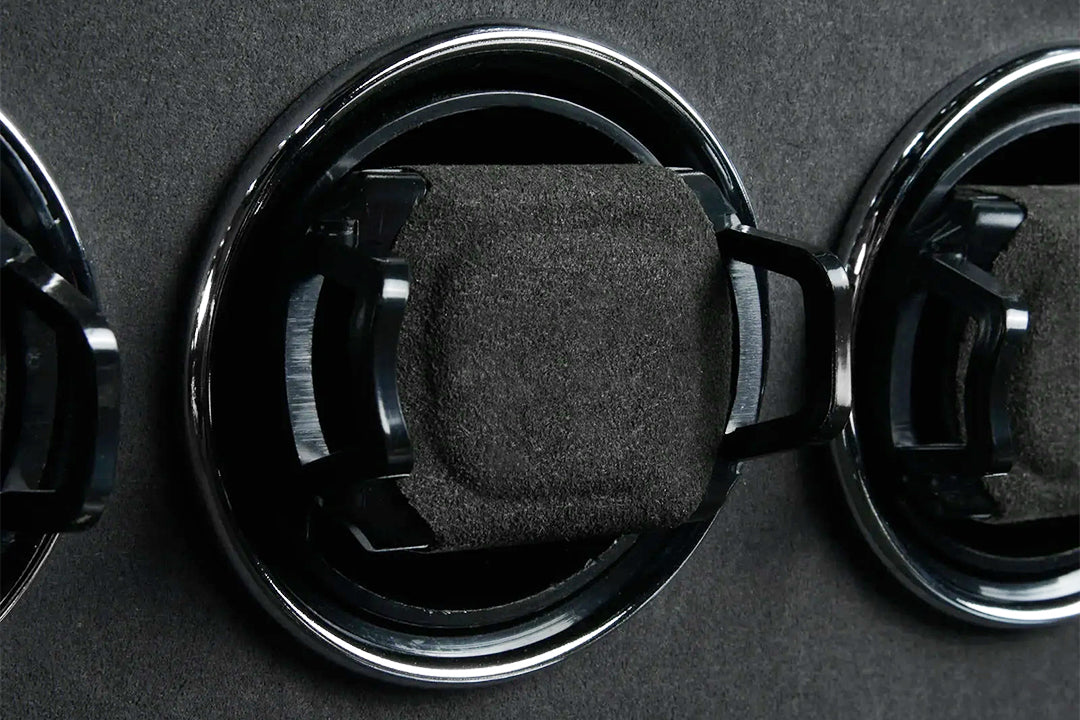 Lining every Enigwatch winder and drawer is Alcantara®, a performance suede material engineered in Italy and featured in Ferrari and Rolls-Royce interiors, as well as Gulfstream private jets and bespoke furniture. Composed of ultra-microfiber with high tensile strength, it resists UV fading, scratching, and compression fatigue.