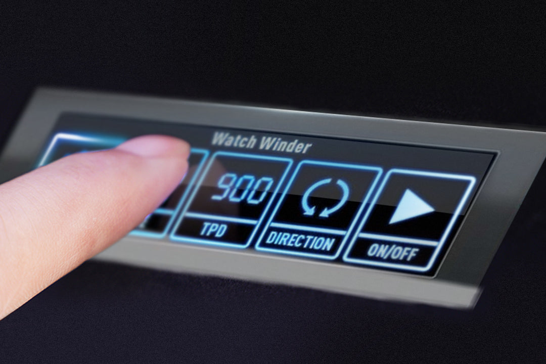 Enigwatch vault and winder configurations can include a touch control panel for setting TPD, direction, and cycle timing with consistent, repeatable operation.